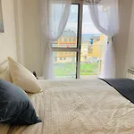 Ausgestattet mit WLAN und einem Flachbildfernseher mit Satellitenkanälen, verfügt die Unterkunft über einen Balkon und eine Sitzecke. Diese Unterkunft ist auch mit einem Sofa ausgestattet. Dieses am Strand Apartment hat 1 Schlafzimmer. Es gibt 1 Bad mit einem Bidet und einer Badewanne und einem Haartrockner und Handtüchern.